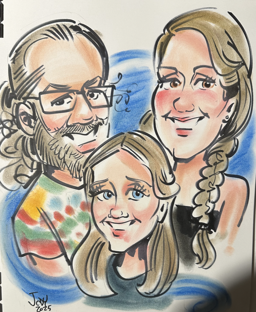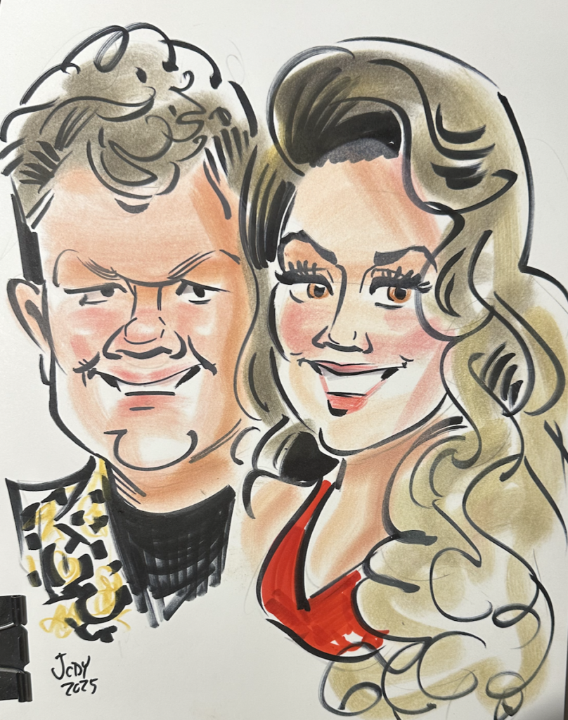 - Sometime, if it seems appropriate, I'll add minimal spot color to (what otherwise would be all black and white caricatures) a particular picture if the person has a certain color item that stands out. The entertainment value alone is worth the exta few seconds of effort.
